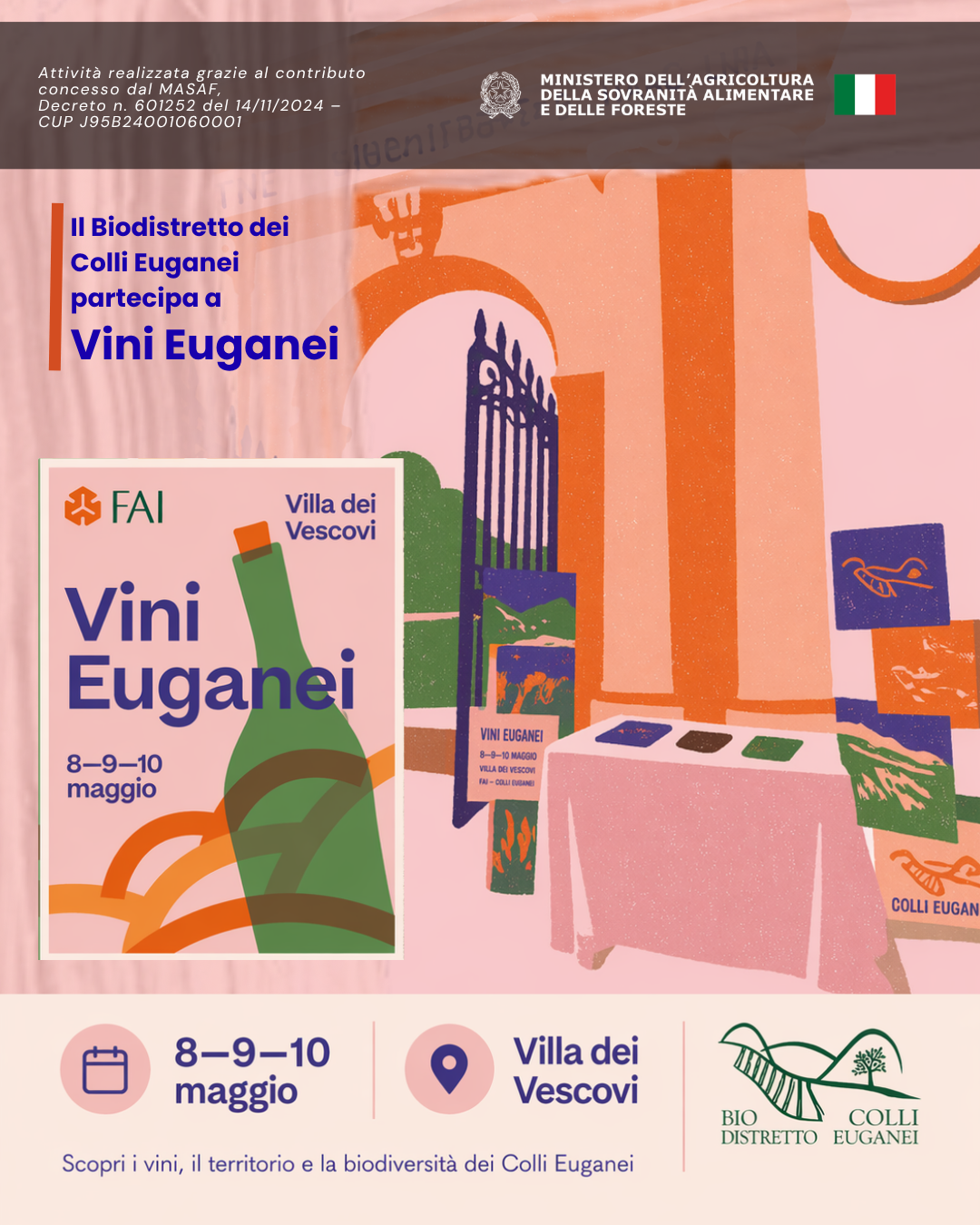 Partecipare a Vini Euganei significa per noi continuare a creare occasioni di incontro e dialogo in un contesto capace di raccontare al meglio l’identità del territorio. Sarà un’opportunità per presentare progetti, attività e buone pratiche, ma anche per confrontarsi con il pubblico su temi sempre più centrali come sostenibilità, cura del paesaggio, relazione tra agricoltura e comunità locale.